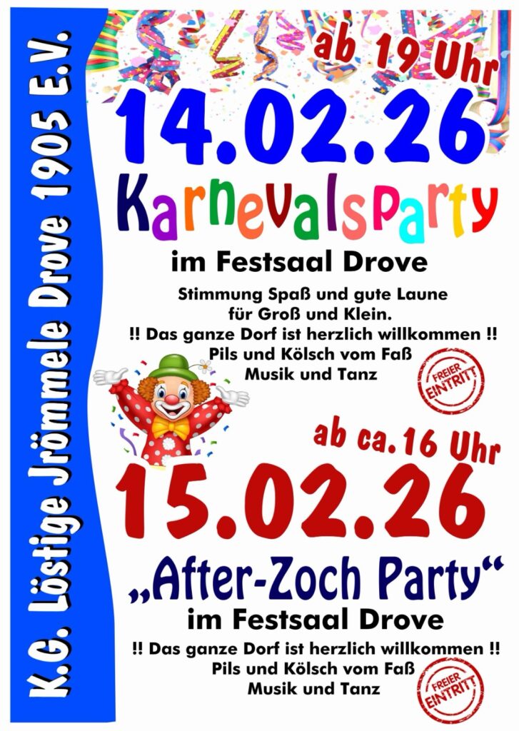 Startseite Willkommen auf der Homepage der KG Löstige Jrömmele Drove e.V. Für mehr News schaut auch auf unsere Facebookseite oder auf Instagram!